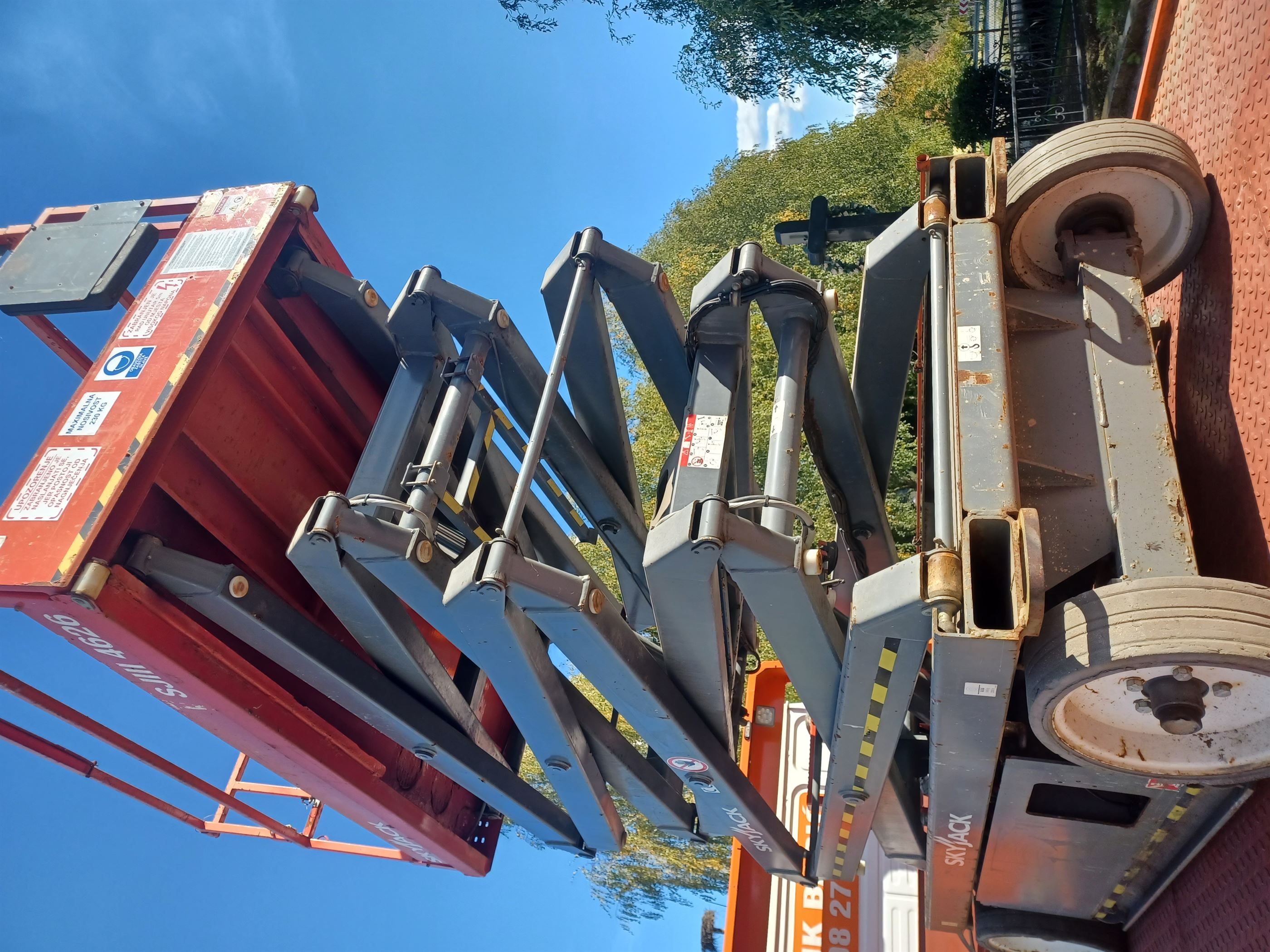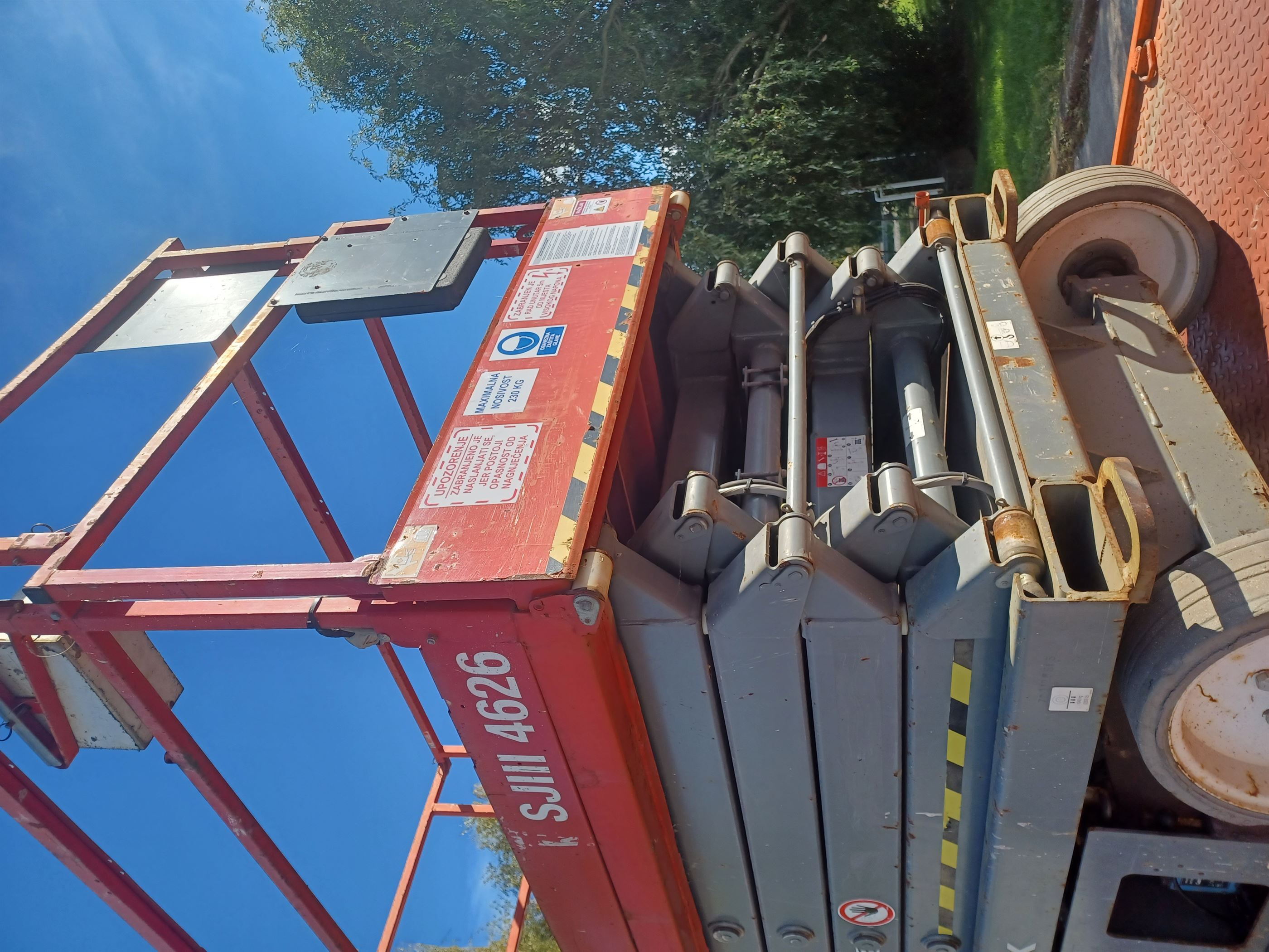 Skyjack SJIII 4626 Share: Tehničke specifikacije:• Radna visina: 10 m• Nosivost na stroju: 230 kg (maks 3 ljudi)• Dimenzije: 2.31×1.79 m• Težina stroja: 2.132 kg Prethodni članak: Skyjack SJIII 3219 Pret